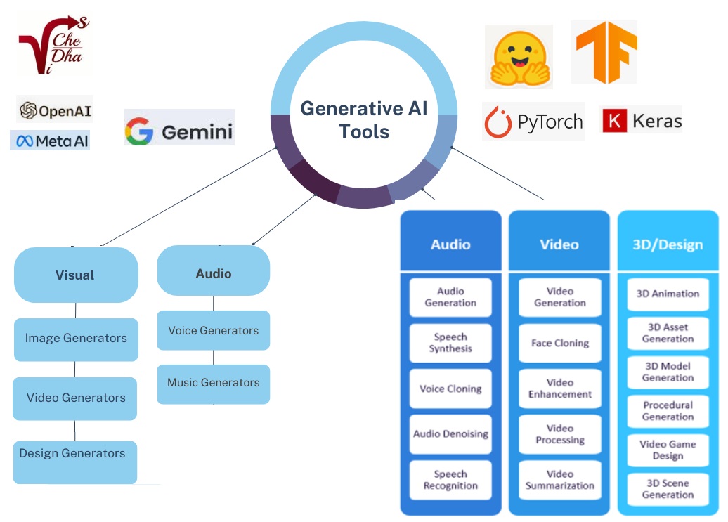 Vischedha.ai showcases remarkable Generative AI capabilities, specializing in text-to-image, video, and voice generation. 								Utilizing advanced models, the platform seamlessly translates textual input into visually stunning images, dynamic videos, 								and natural-sounding voices. This functionality offers creative solutions for content creation, multimedia generation, and 								voice synthesis, contributing to a versatile set of applications across various industries.