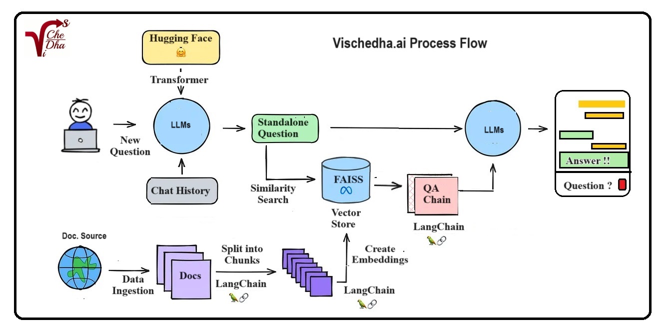 Vischedha.ai is leverage frameworks like Langchain and  are both open-source Generative AI (GenAI) frameworks that can be used to build and 					deploy GenAI models. LlamaIndex is a more specialized framework that is specifically designed for building and deploying text-to-image generators. 					Langchain is a more general-purpose framework that can be used to build a wider variety of GenAI models, including text-to-image generators, image-					to-image translators, and music generators.