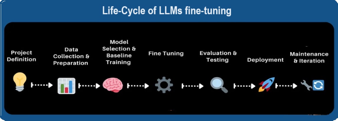 The fine-tuning process involves optimizing model parameters and hyperparameters to enhance performance on the targeted task. The effectiveness of 					the fine-tuned model is rigorously validated and, once satisfactory, the model is deployed by Vischedha.ai for seamless integration into real-world 					applications. This fine-tuning methodology ensures that Vischedha.ai's language models not only benefit from their pre-trained capabilities but also 					adapt intelligently to the nuances of specific domains, providing tailored solutions for diverse language-based tasks.